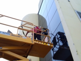 Cada 6 meses realizamos la limpieza de los vidrios de altura de nuestro cliente vidrios piazze, con todo la maquinaria, insumos, elementos de seguridad, personal asegurado, etc.